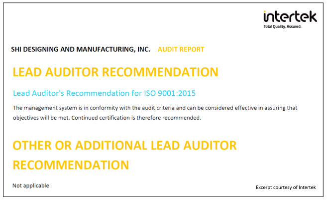 Intertek auditor conducted partially remote audit in SDMI last November 3~4, 2022 to examine the organization’s key QMS processes. The result was very satisfying. No major nor Minor non-conformities were observed. A tightly controlled and effective design process being used by design disciplines that ensures compliance to customer requirements was noted and opportunity for improvement was considered in Management Review process. Improving trend in maturity level of major QMS elements was also reported reflecting the concept continuous improvement.